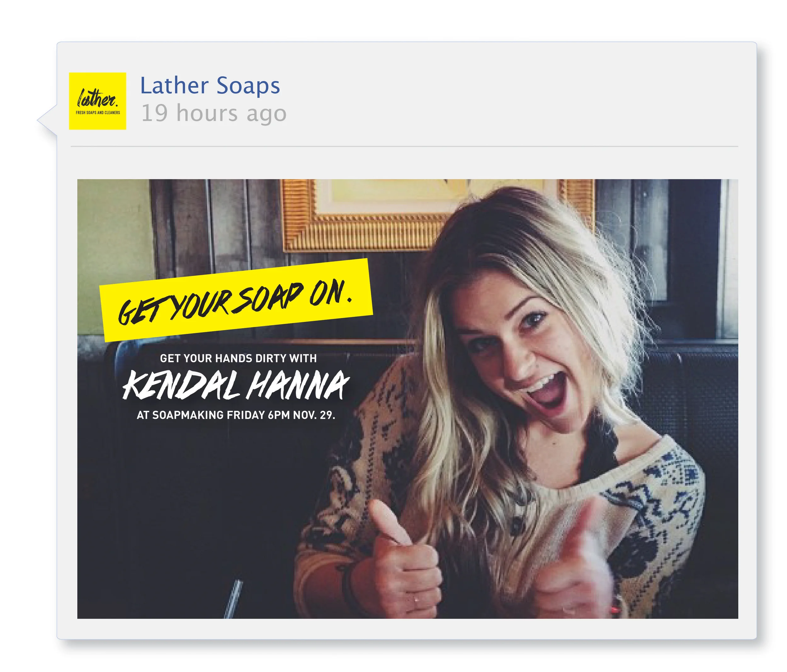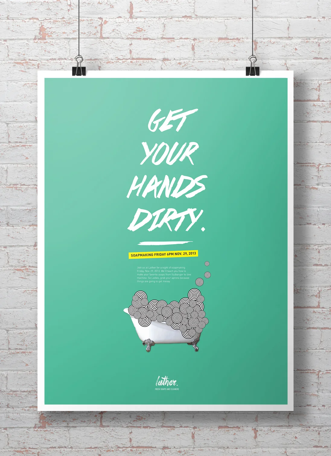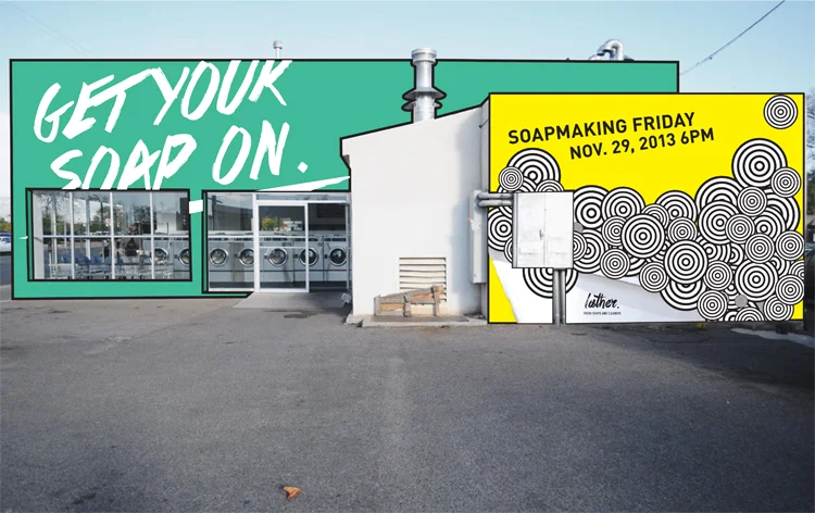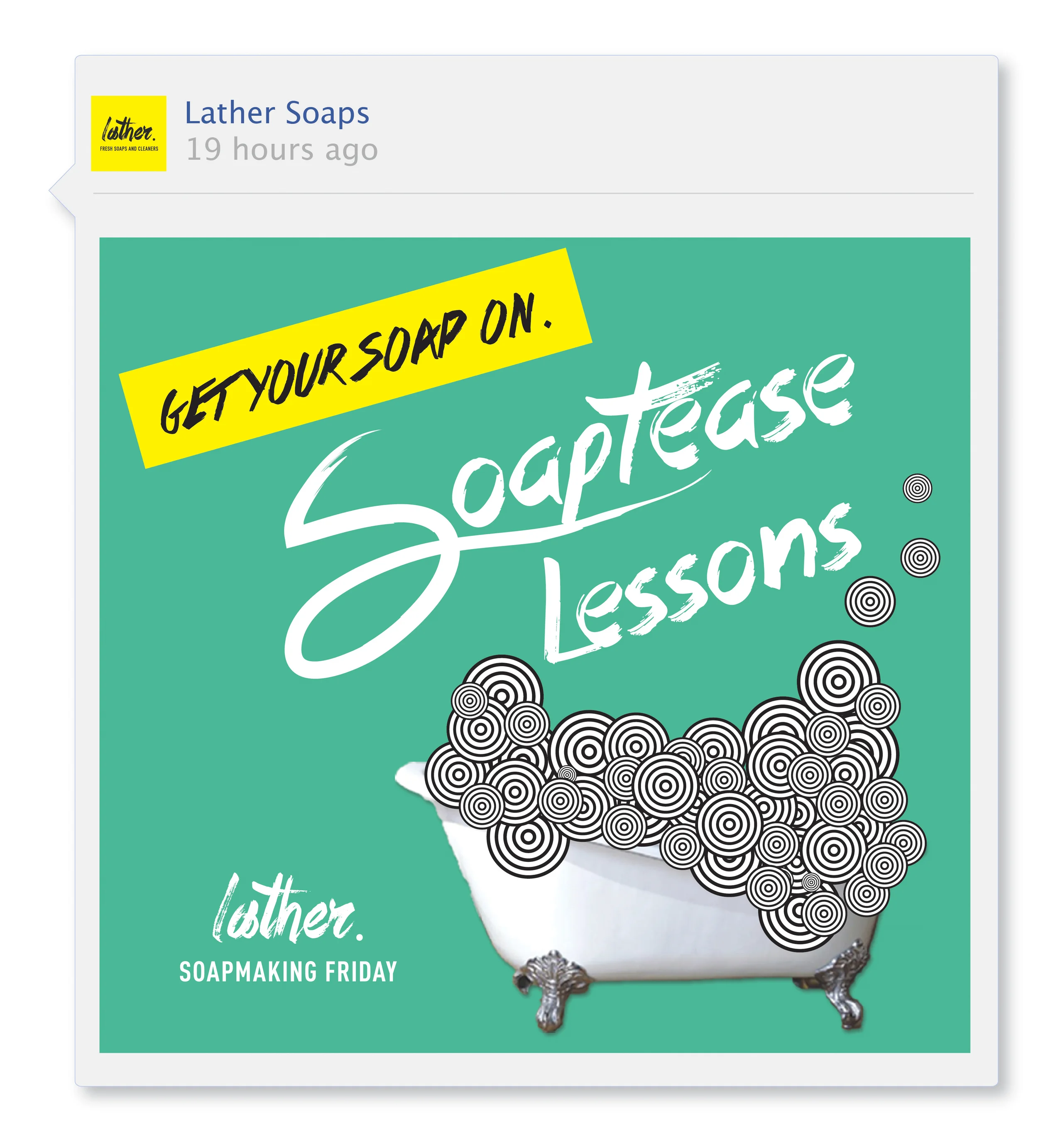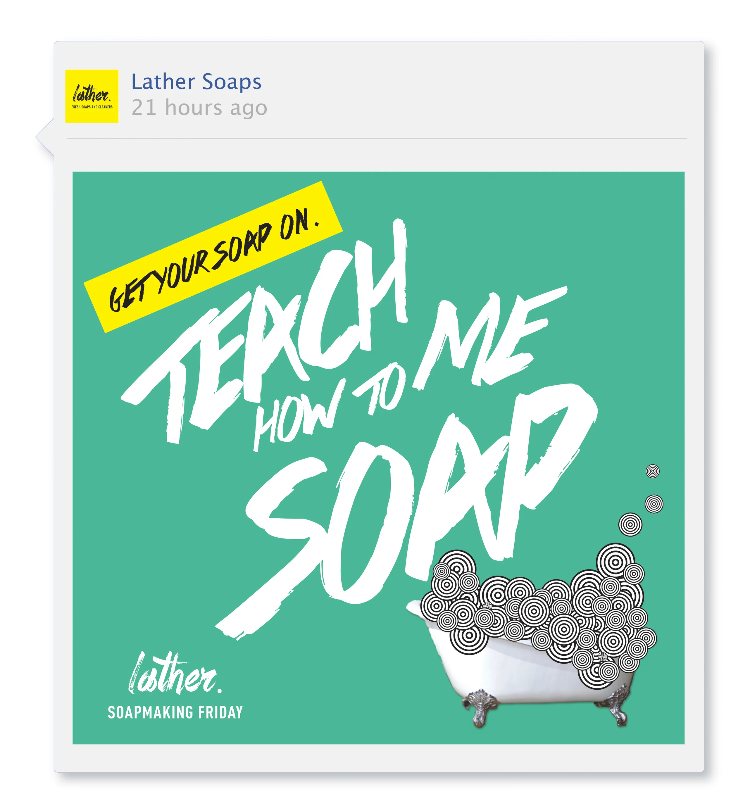 Soap Making Friday is a micro campaign for Lather Fresh Soaps and Cleaners. It’s a night of soap making and fun. It allows the customer to get involved in the process while having an enjoyable evening. The event is held at Lather with one of their own “Soap Geniuses” who guides the class through the soap making process.